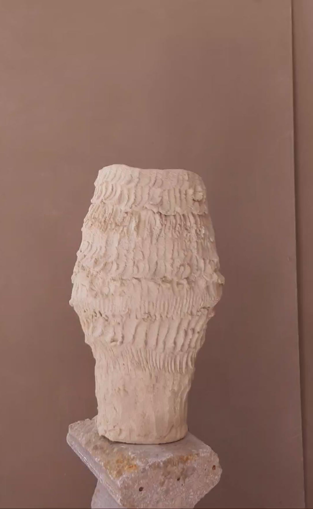 handbuilt beige stoneware vase, unglazed, not watertight | h. 27 cm., w. 17 cm. | unique piece
