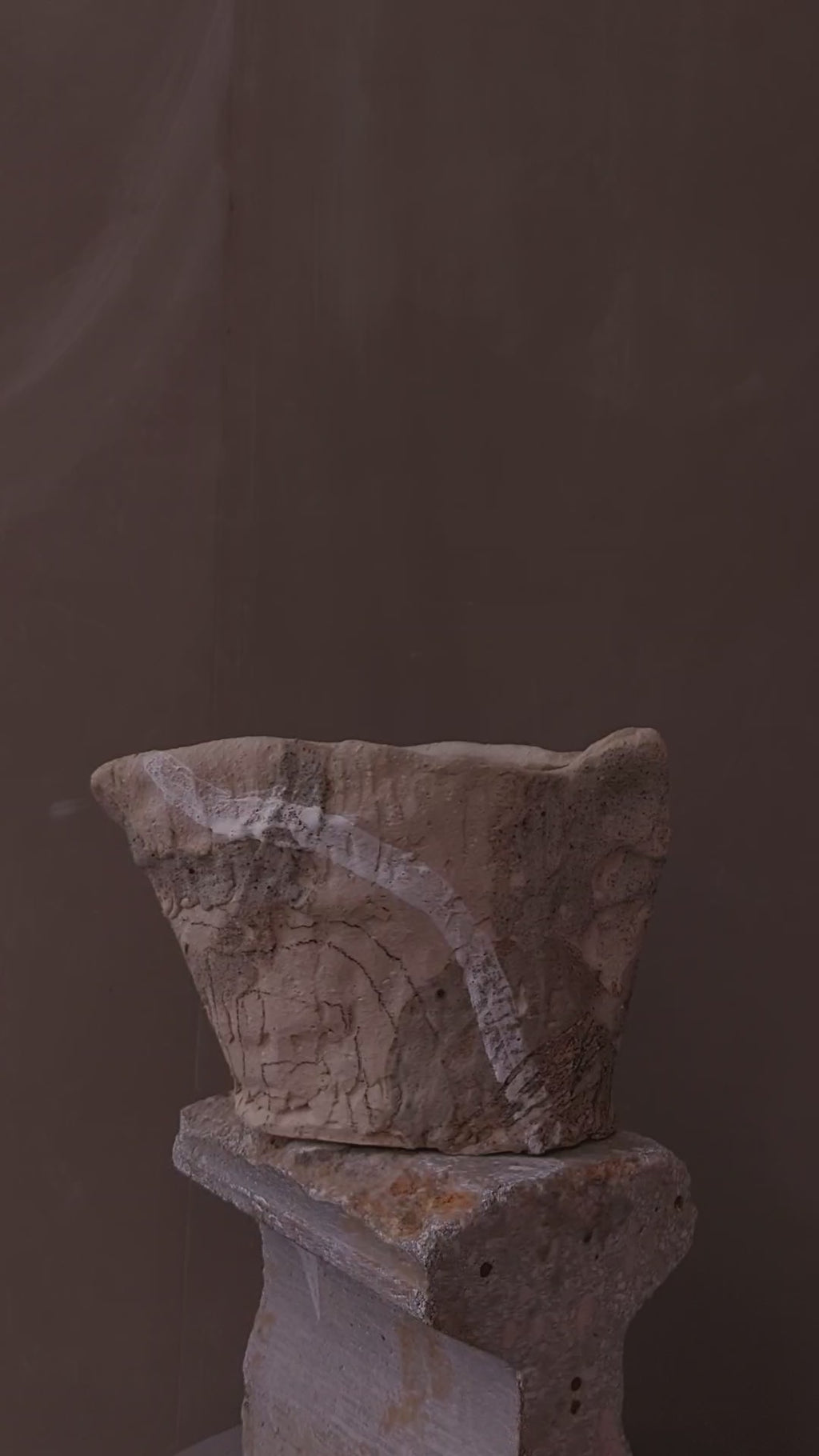 handbuilt beige stoneware vase, decorated with slip coloured with pigments from Cabo de Gata and Tabernas desert sorroundings. unglazed. not watertight. w. 19 cm., h. 13 cm.
