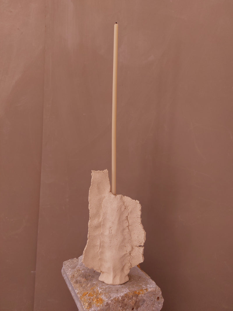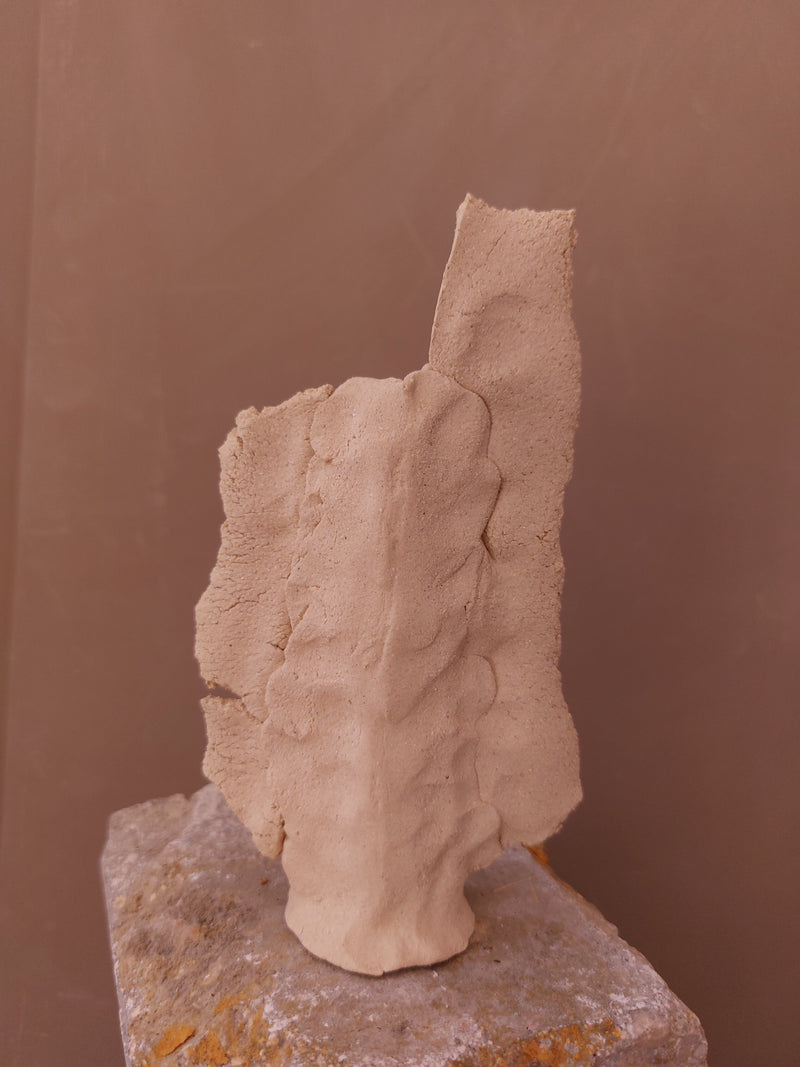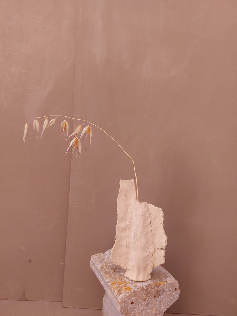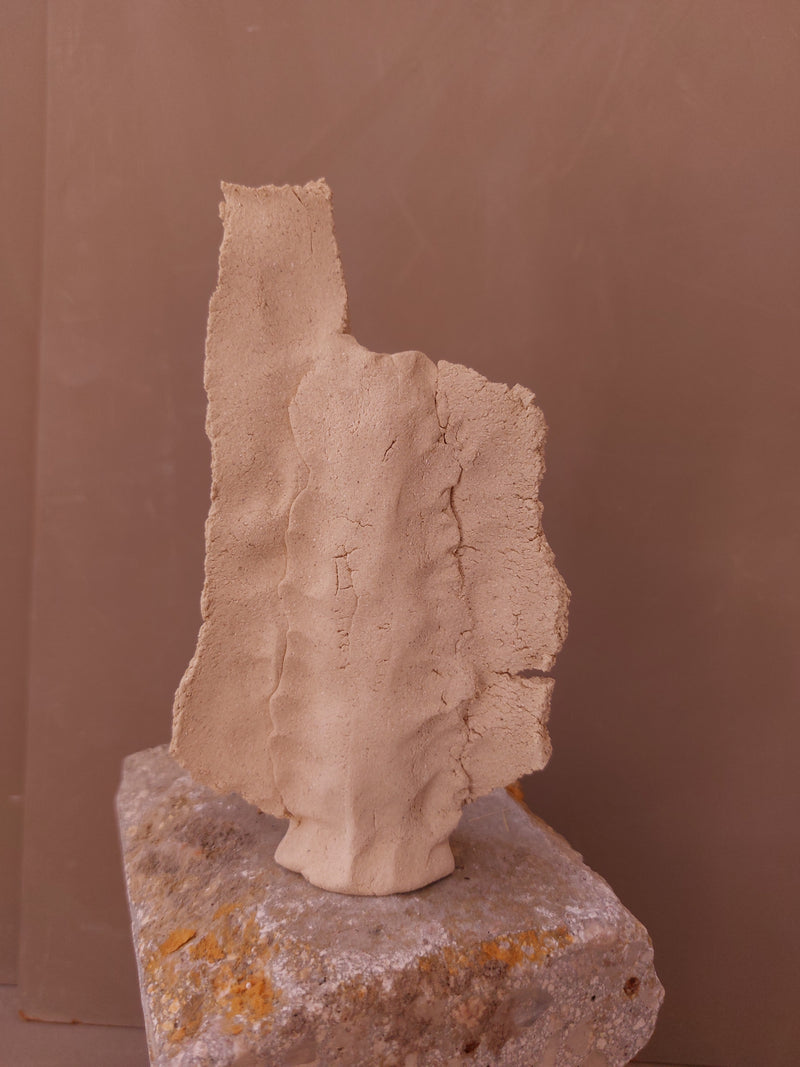 handbuilt white stoneware vase-sculpture, unglazed | h. 16 cm., w. 8 cm.